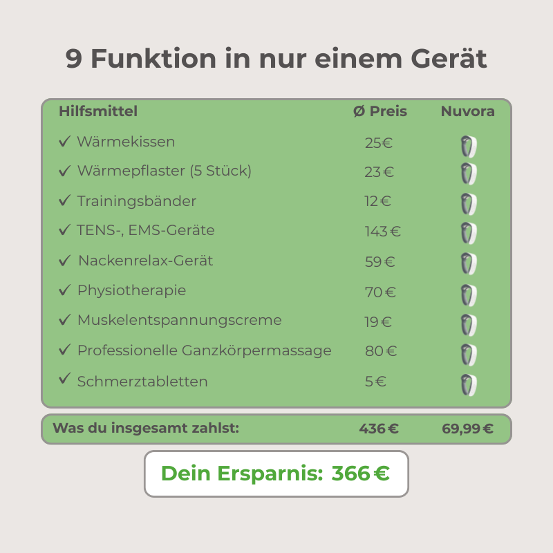 Irgendwann habe ich mich intensiver mit den Hintergründen beschäftigt – und bin immer wieder beim Vagusnerv gelandet. Gerade der reagiert extrem sensibel auf Nackenverspannungen und kann bei Reizung all diese seltsamen Symptome auslösen. Genau da setzt Nuvora an: Statt nur oberflächlich zu wärmen, aktivieren die EMS-Impulse die tiefen Muskeln rund um die Vaguszone und bringen das System wieder ins Gleichgewicht.