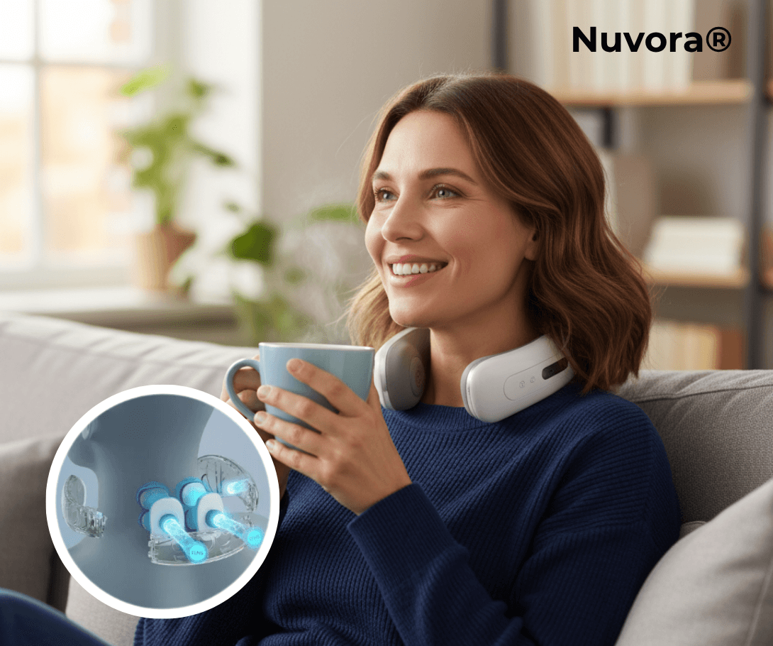 Nuvora® fühlt sich an, als würde dein Nacken nach einem langen, schweren Tag endlich loslassen.